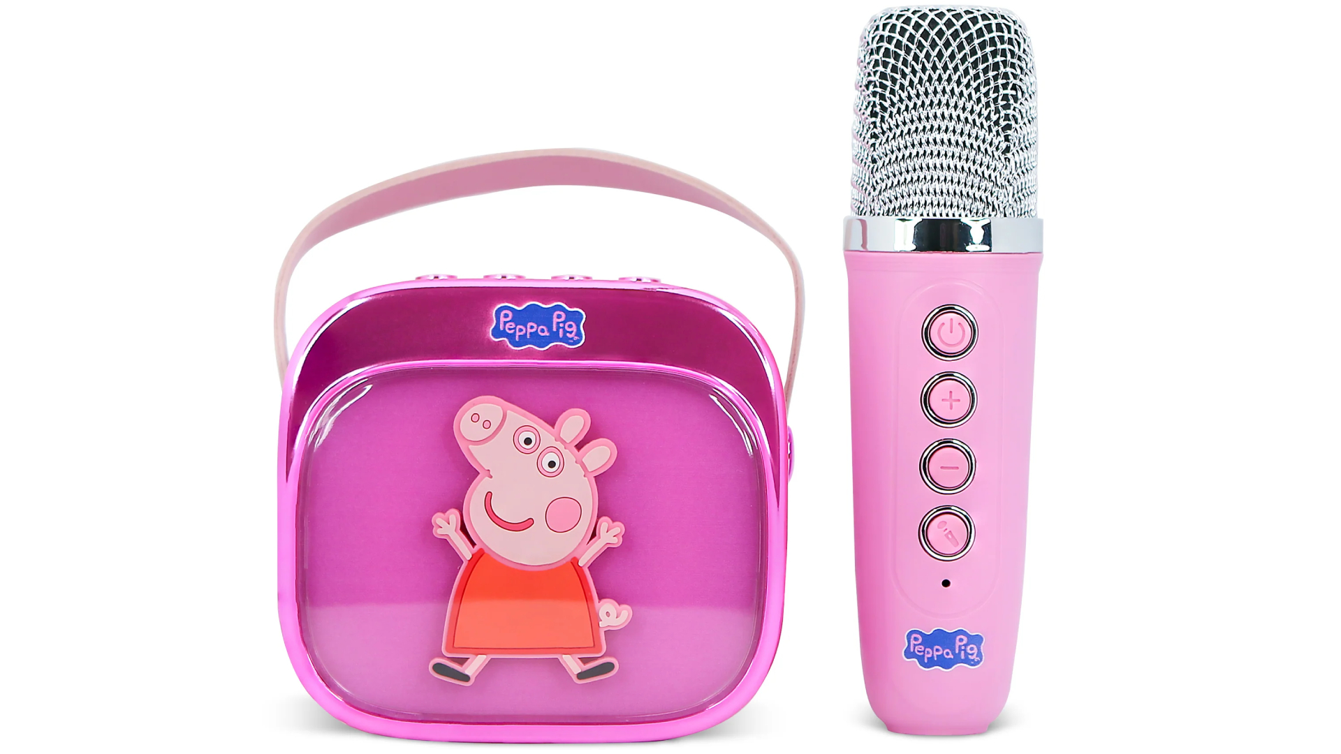 Fie că cânți melodiile preferate ale Peppa, organizezi o petrecere cu tema Peppa sau te distrezi cu familia, acest set de difuzoare și microfoane inspirat de Peppa face ca fiecare moment să fie oinktastic!