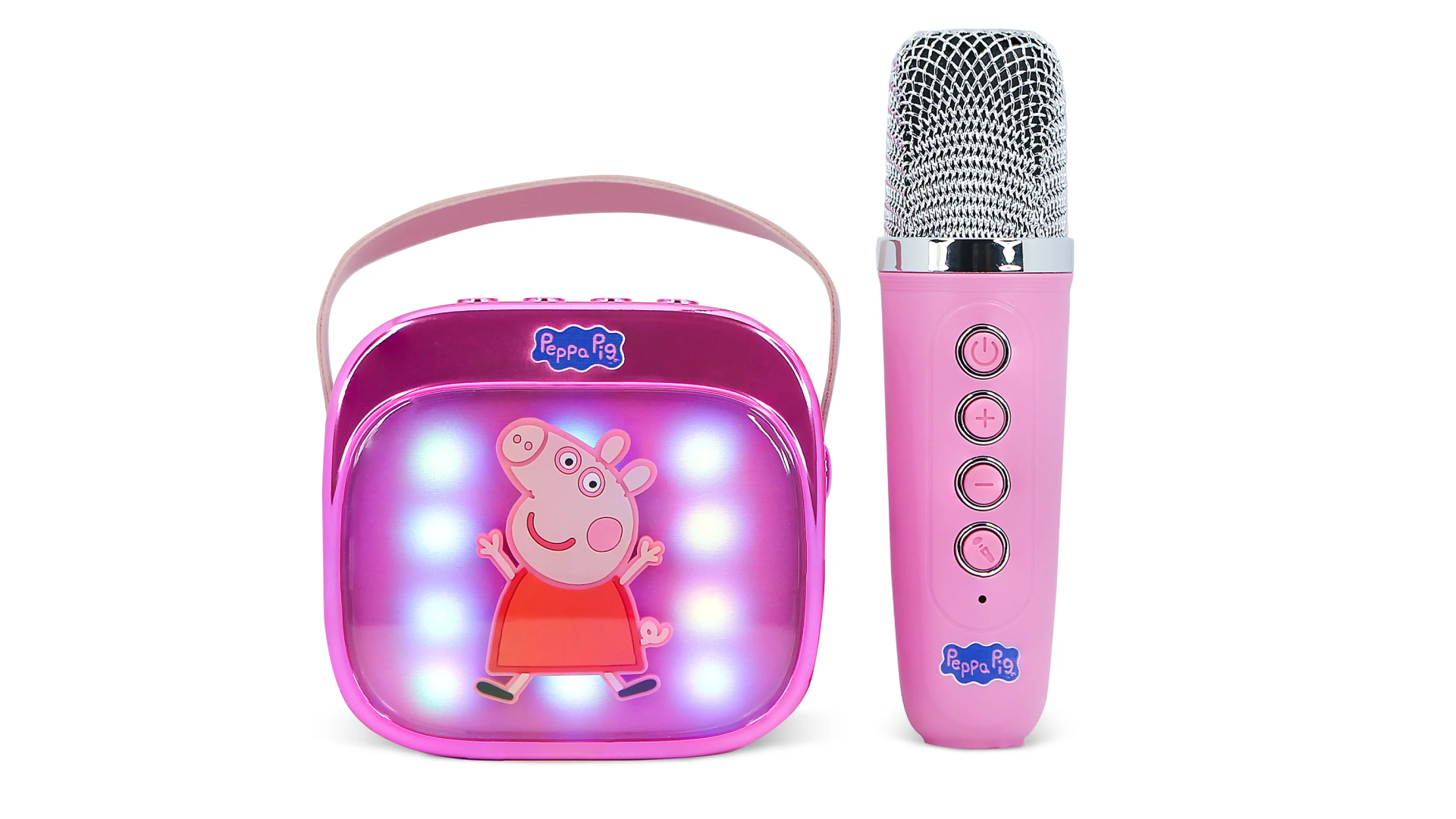 Cântă, dansează și distrează-te cu difuzorul și microfonul wireless Peppa Pig PopSing LED Light-Up Wireless Karaoke Speaker & Microphone!