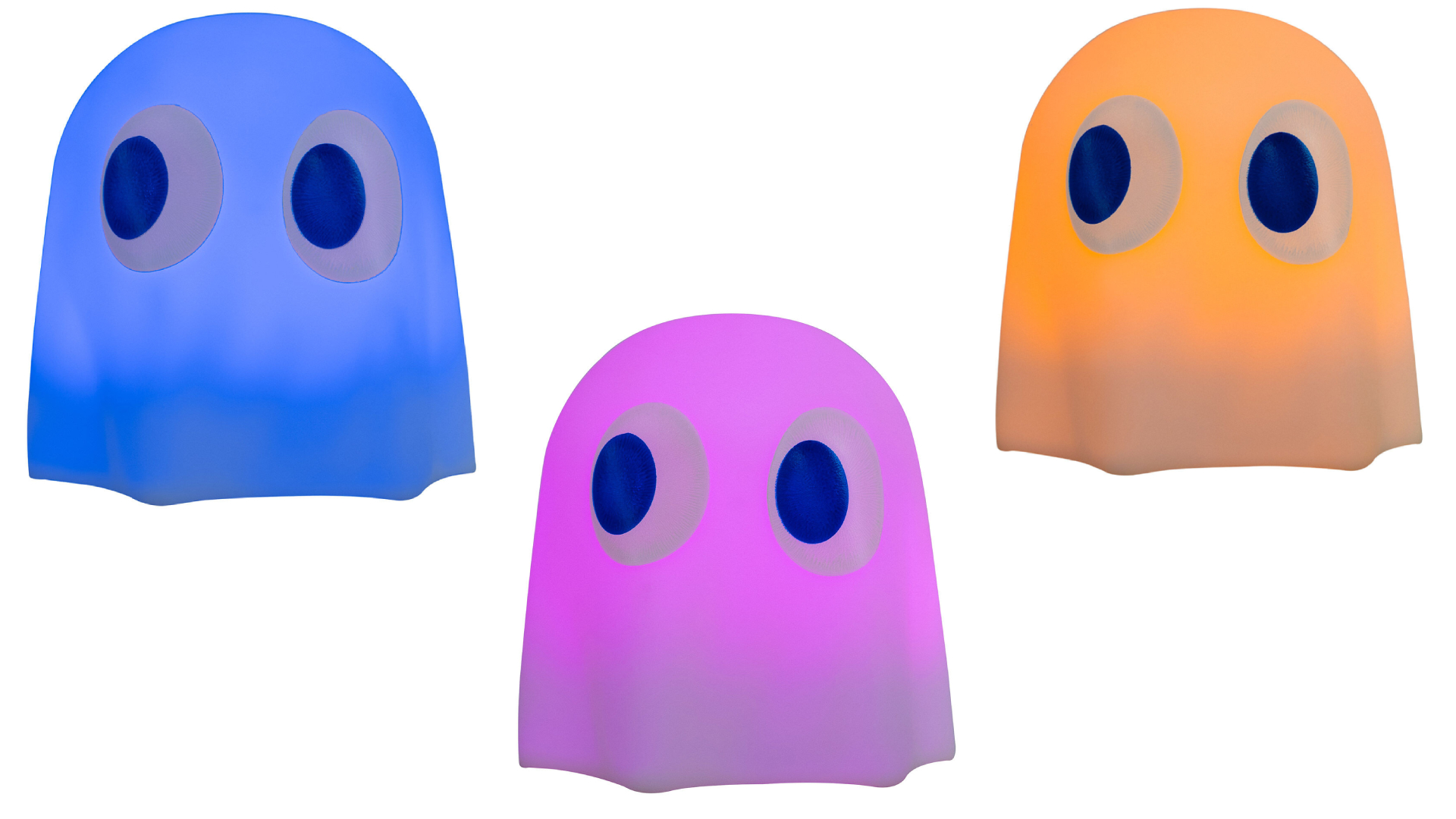 Adu distracția nostalgică de arcade în casa ta cu PAC-MAN Colour-Changing Mood Light, o lampă fantomă 3D din silicon moale.