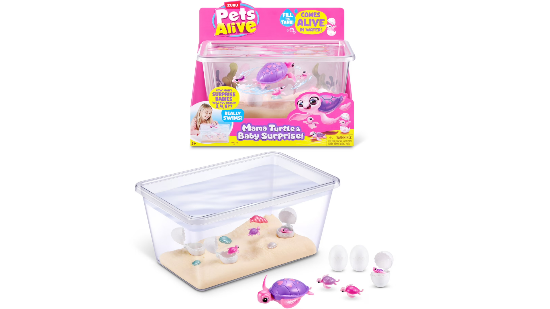 Setul surpriză Pets Alive de la ZURU Mama Turtle & Baby le permite copiilor să eclozeze o adorabilă familie de broaște țestoase!