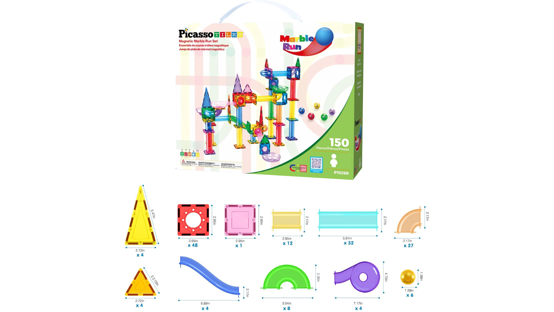 Picasso Tiles Magnetic Marble Run Set 150 pcs (PTG150)