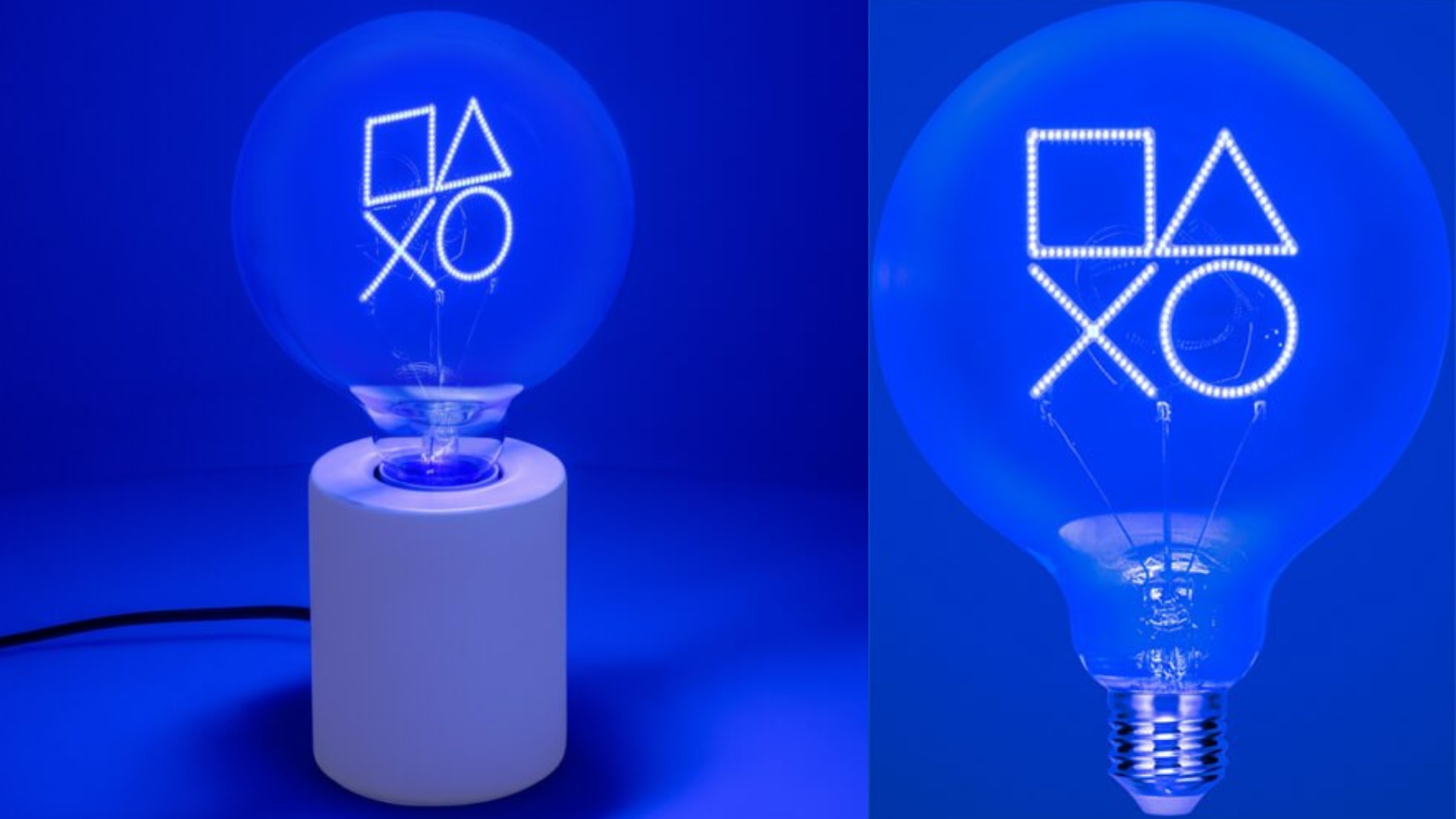Becul său decorativ LED E27 are un filament în formă de icon PlayStation care strălucește cu o lumină albastră clasică.
