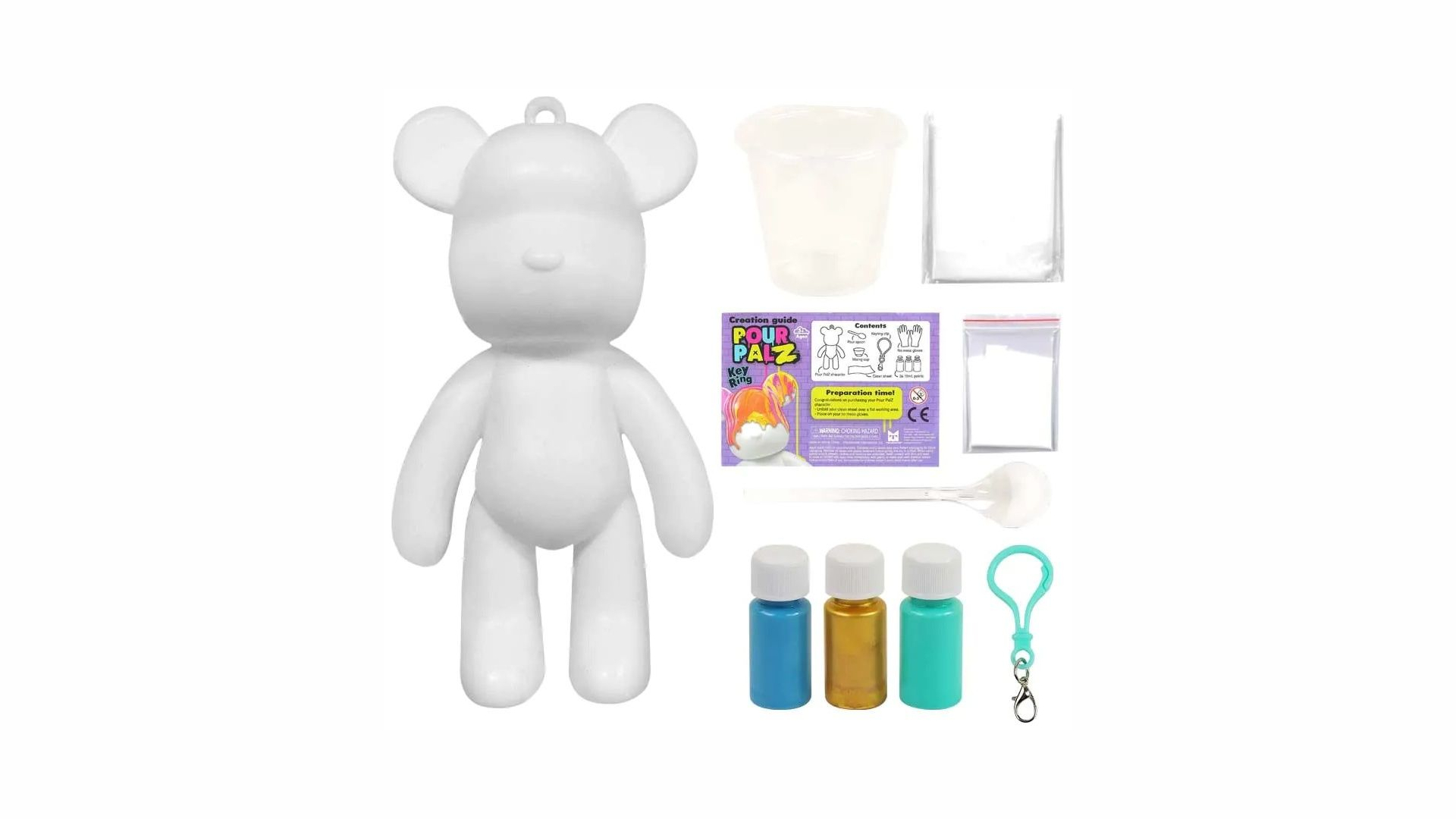Dați frâu liber imaginației cu mini brelocurile DIY Pour Palz Paint Bear! Transformați mini ursuleții albi simpli în capodopere vibrante și atrăgătoare cu această activitate creativă și distractivă.