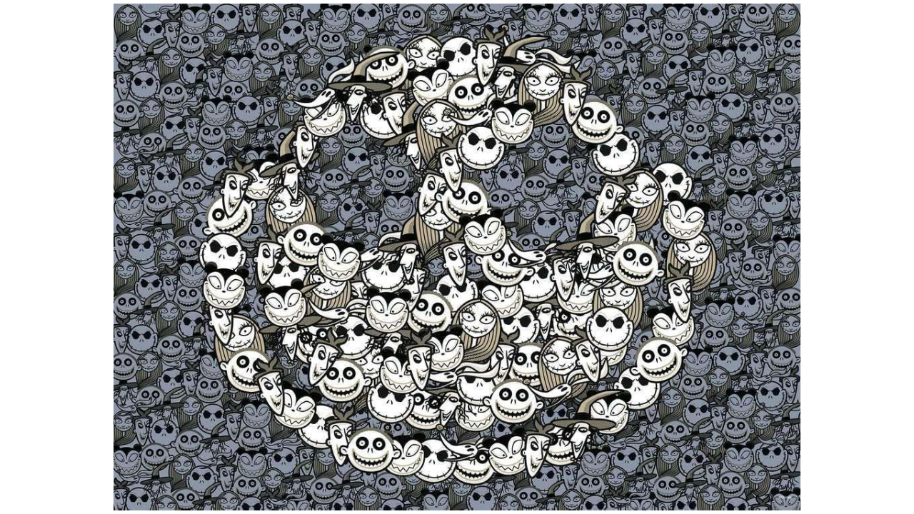 Imaginea puzzle-ului surprinde o scenă înfricoșătoare, dar fermecătoare, plină de schelete.