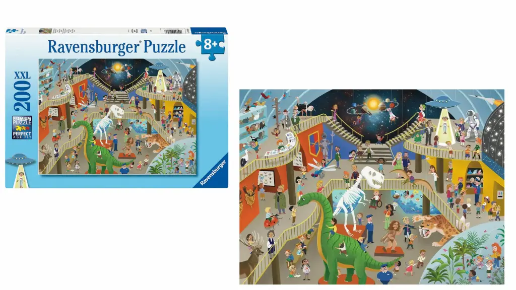 Puzzle În muzeu 200d – Descoperă lumea magică a viitorului cu uimitorul puzzle „În muzeu”, care prezintă orașe futuriste, mașini zburătoare și zgârie-nori strălucitori.
