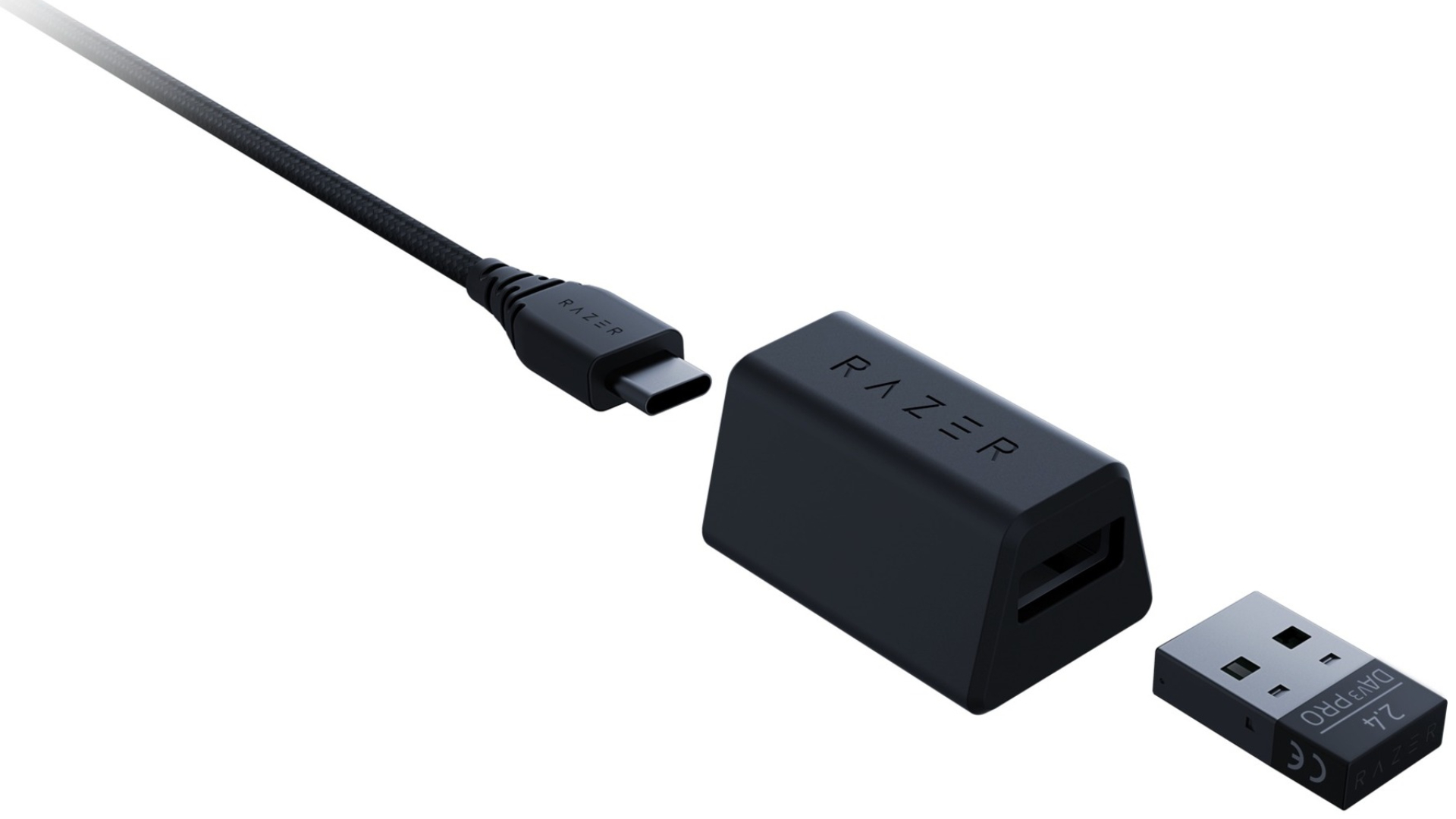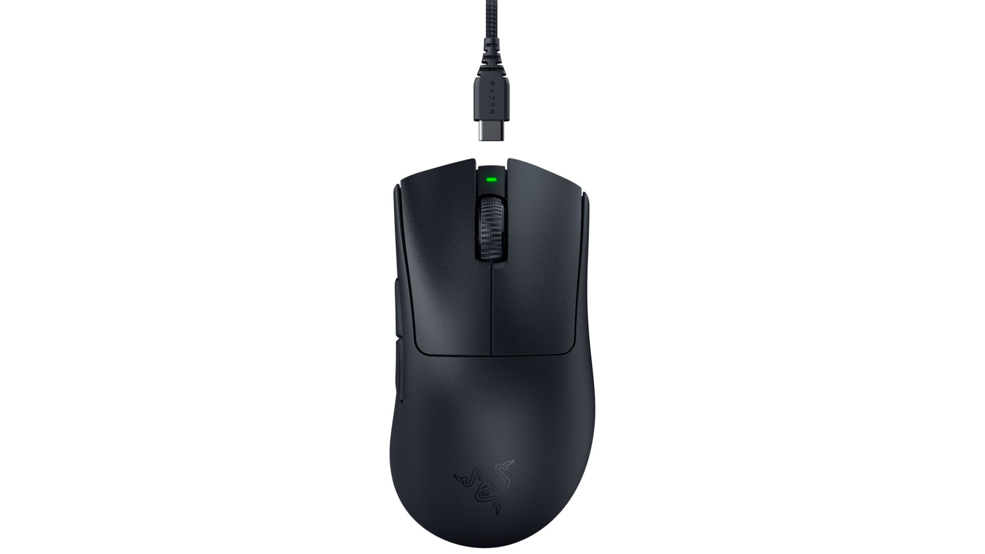 Bateria mai mică și mai ușoară a DeathAdder V3 Pro oferă o eficiență energetică mai mare, oferă până la 80 de ore de joc continuu și este reîncărcabilă prin USB-C.