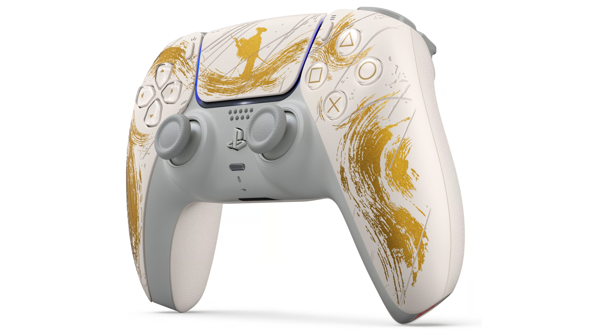 Controler wireless Sony DualSense - Ghost of Yōtei Gold Limited Edition, Gamepad, Android, MAC, PC, PlayStation 5, iOS, D-Pad, buton Home, buton Opțiuni, buton Share, analogic/digital, roșu/verde/albastru, cu fir și wireless