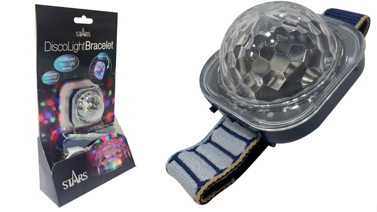 Brățara Disco Light multicoloră de la Stars este un accesoriu inovator și distractiv care ridică orice petrecere în valoare.