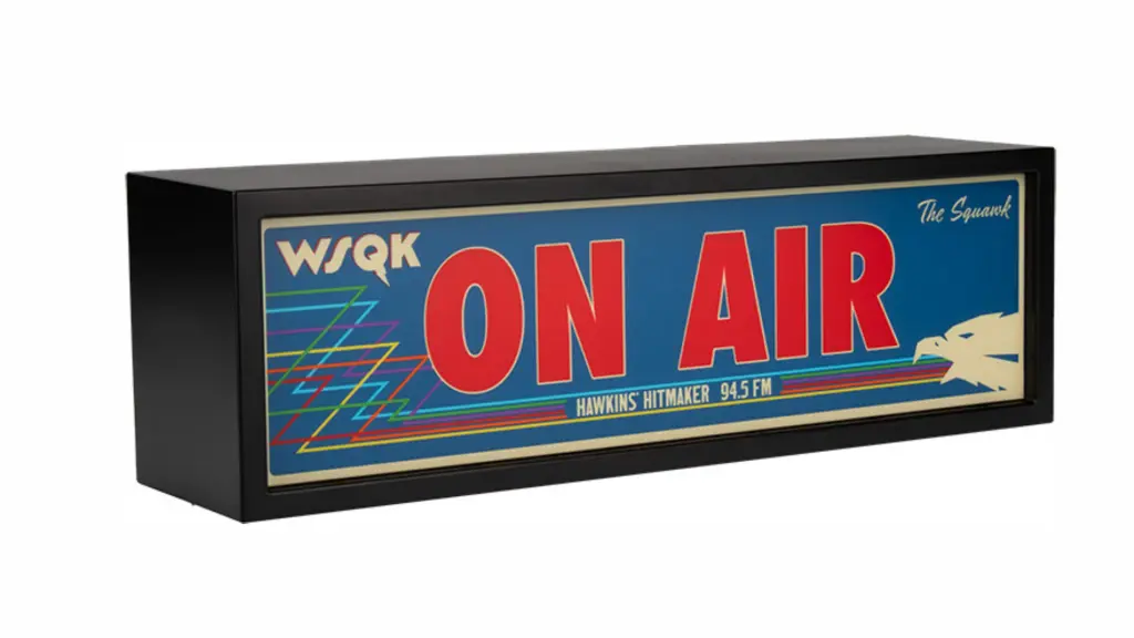 Cu o lățime de 30 cm, acest obiect decorativ de inspirație retro arată exact ca semnul iconic „On Air” al postului de radio WSQK, aducând instantaneu atmosfera anilor '80 și o bucățică din Upside Down în casa ta.