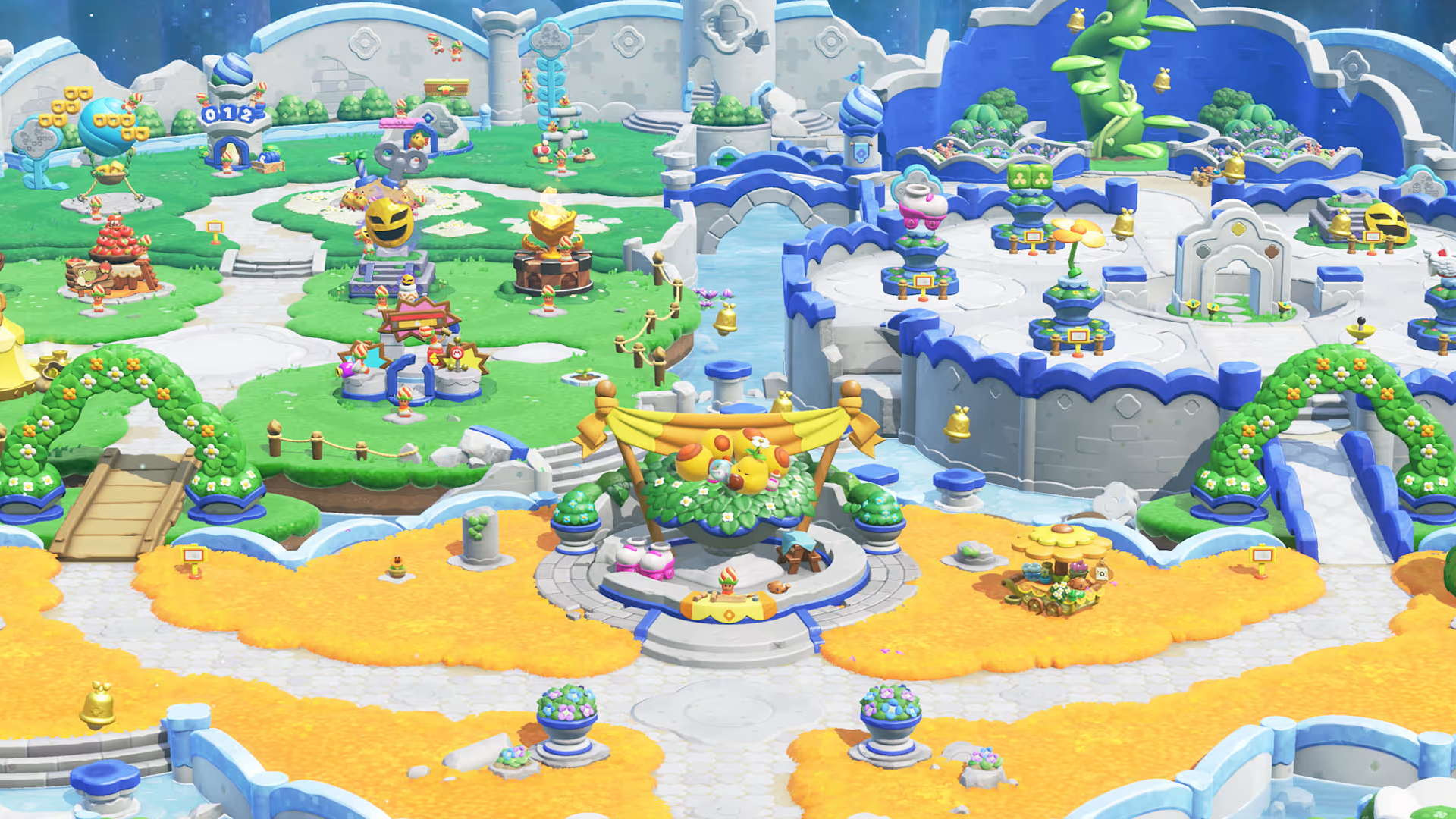 Rosalina a ajuns în Regatul Florilor! Poți alege să joci în rolul ei, fie că încerci să-l învingi pe Castelul Bowser, să-i urmărești pe Koopalingi sau să te bucuri de atracțiile și provocările din Parcul Bellabel.