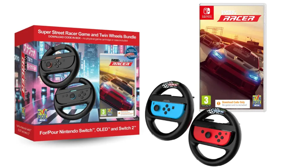 Super Street Racer (Code in a Box) with Twin Racing Wheels Bundle - Nintendo Switch