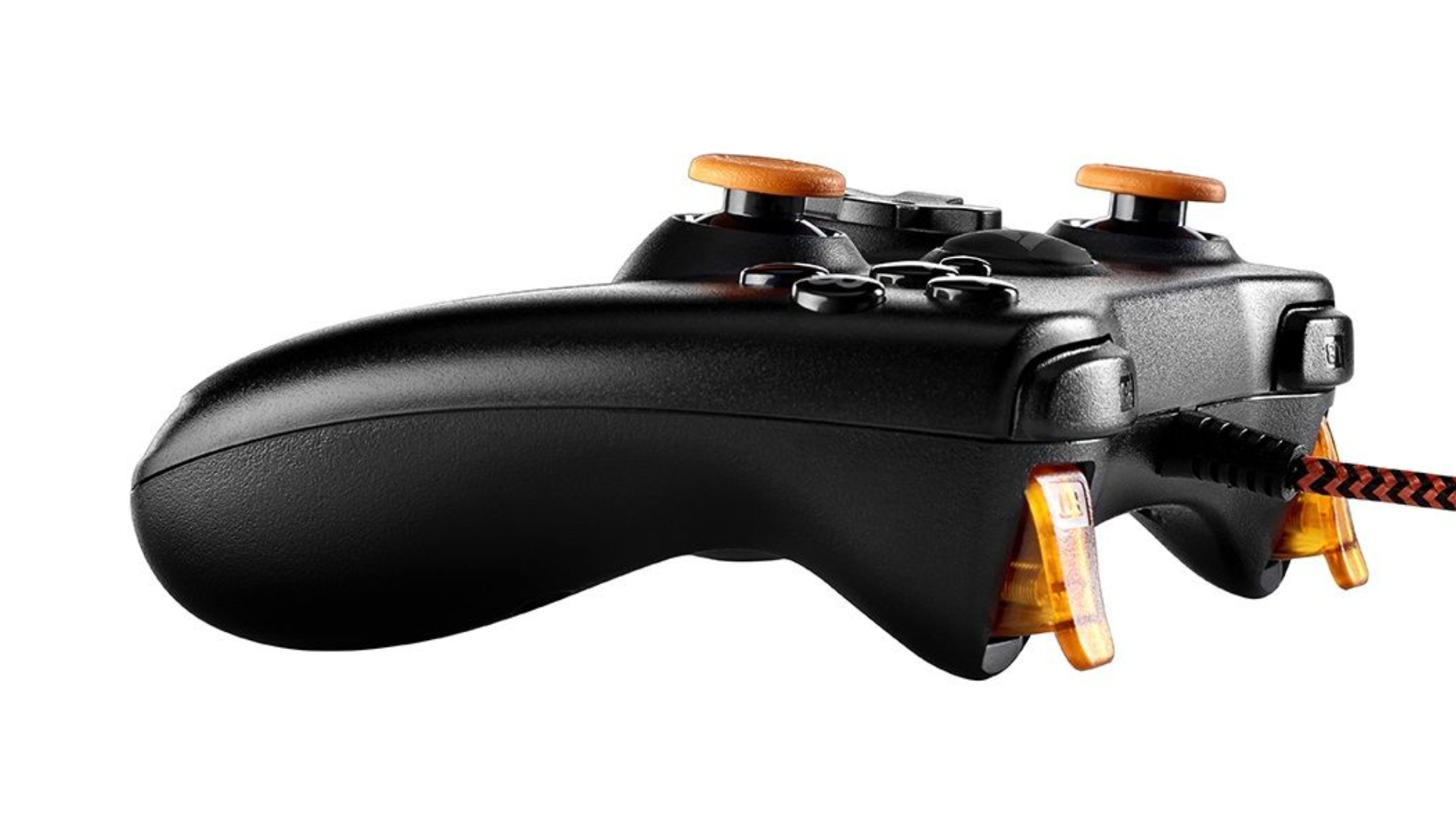 GP XID Pro este echipat cu două mini bare cu textură din cauciuc și un D-pad în formă de cruce pentru țintire și mișcare precise.