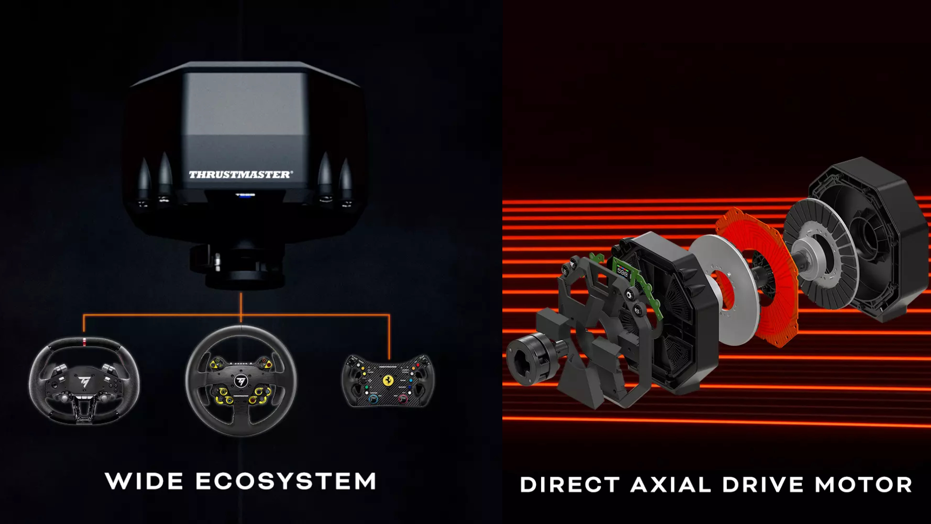 Intrați într-o nouă eră a simulatoarelor de curse cu baza servo T598 și motorul său Direct Axial Drive cu flux axial: noua generație de tehnologie Direct Drive proiectată de Thrustmaster.