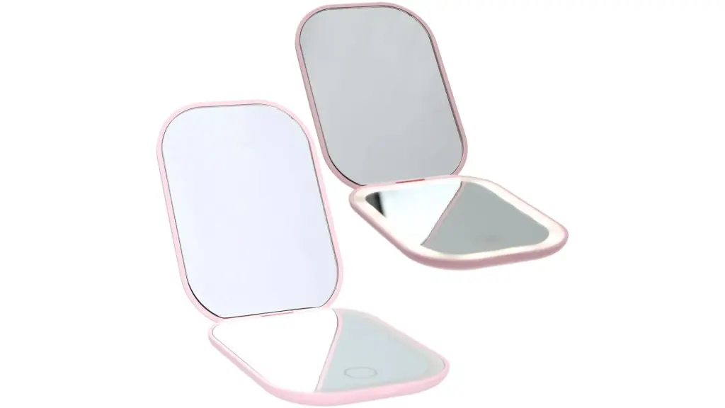 Oglinda de buzunar roz, practică, are o oglindă normală și o oglindă cu mărire dublă în interior.