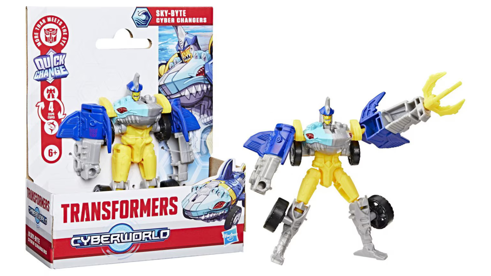 În Transformers Cyberworld, copiii determină ce se întâmplă și acest lucru începe cu jucării grozave, cum ar fi figurina Sky-Byte Cyber Changers.