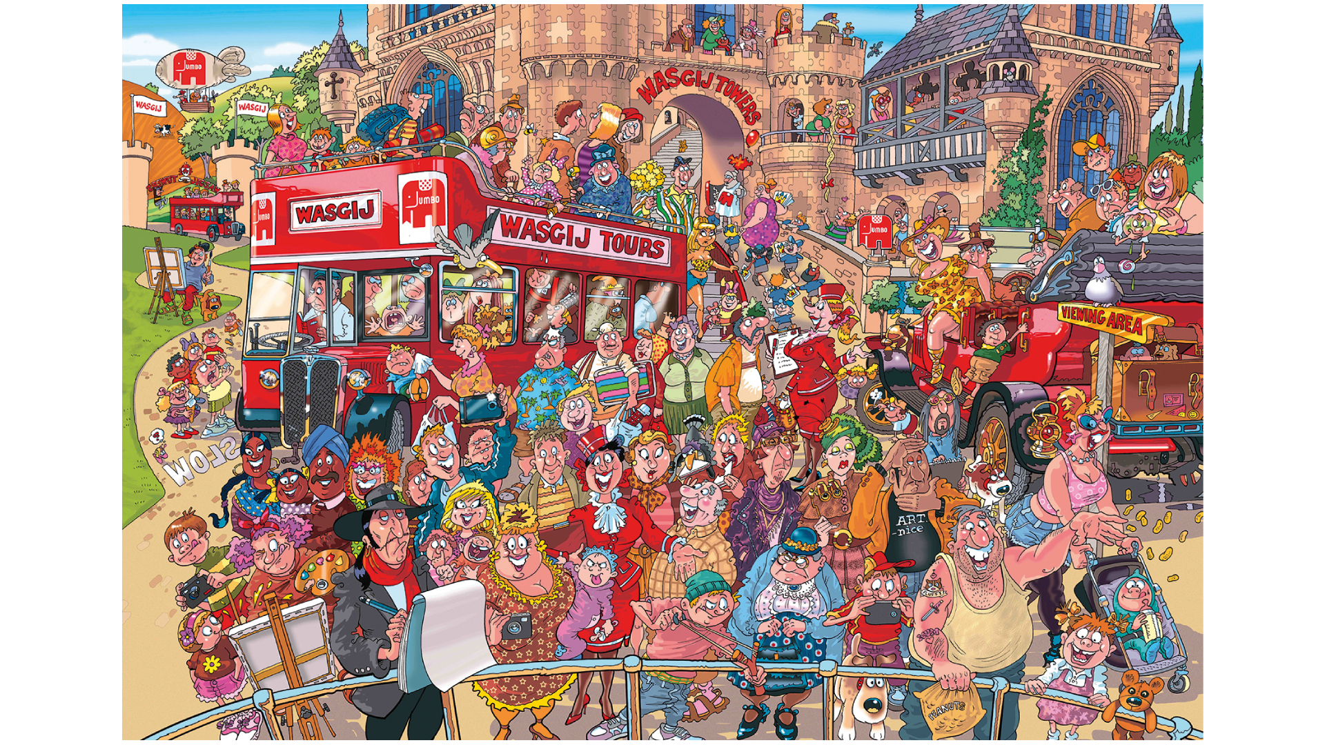 În timp ce fericiții jucători de puzzle Wasgij își bucură ziua călătorind cu autobuzul decapotabil Wasgij Tours și plimbându-se în jurul Turnurilor Wasgij, o mulțime se adună în fața zonei de vizionare pentru a fi martori la ceva magic.