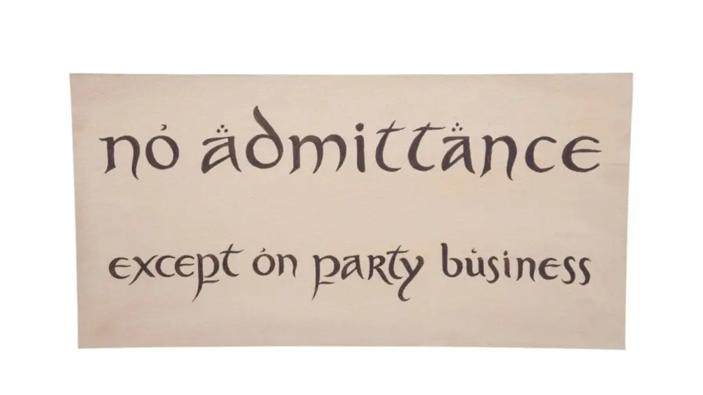 Din ce în ce mai iritat de atenția atrasă de sărbătorirea celei de-a 111-a aniversări, Bilbo Baggins este nevoit să ia măsuri drastice (în termeni hobbiți) și îi cere lui Frodo să atârne un semn pe poartă: „Accesul interzis, cu excepția celor implicați în petrecere”.